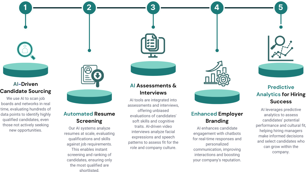 Our recruiters leverage AI-driven insights to make better-informed decisions while maintaining the personal interaction that is crucial for understanding cultural fit and candidate motivation